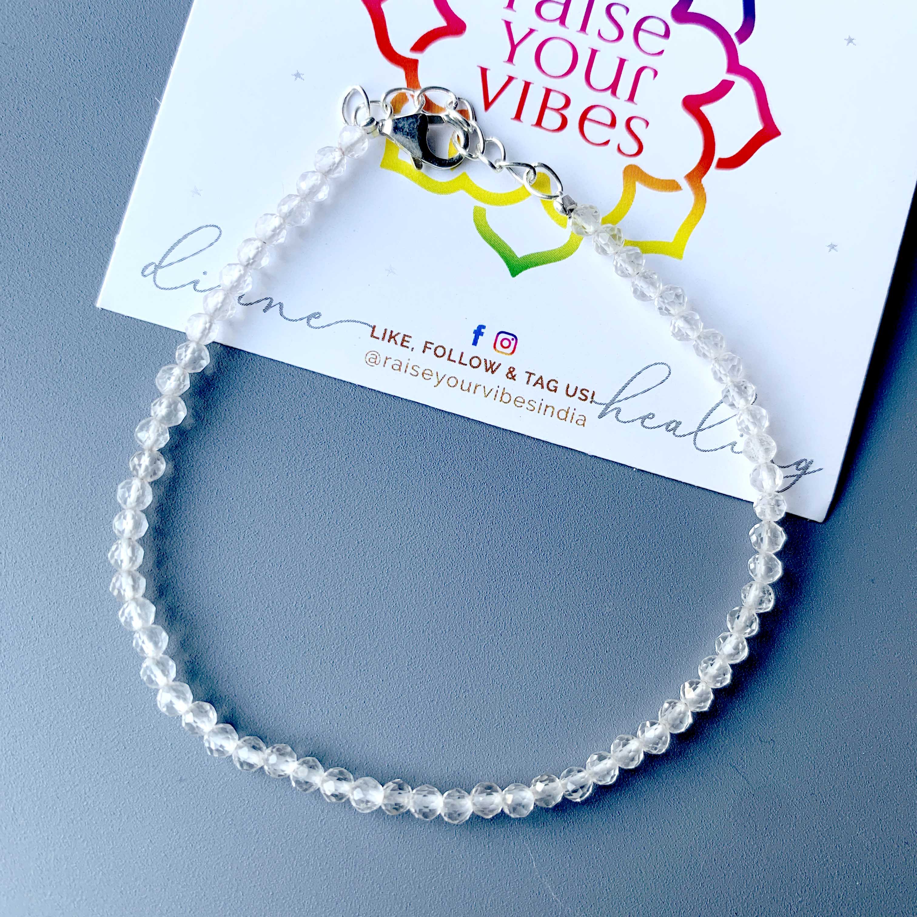 ENERGIZED Clear Quartz 3mm 92.5 Silver Bracelet | Adjustable | 100% AUTHENTIC & NATURAL