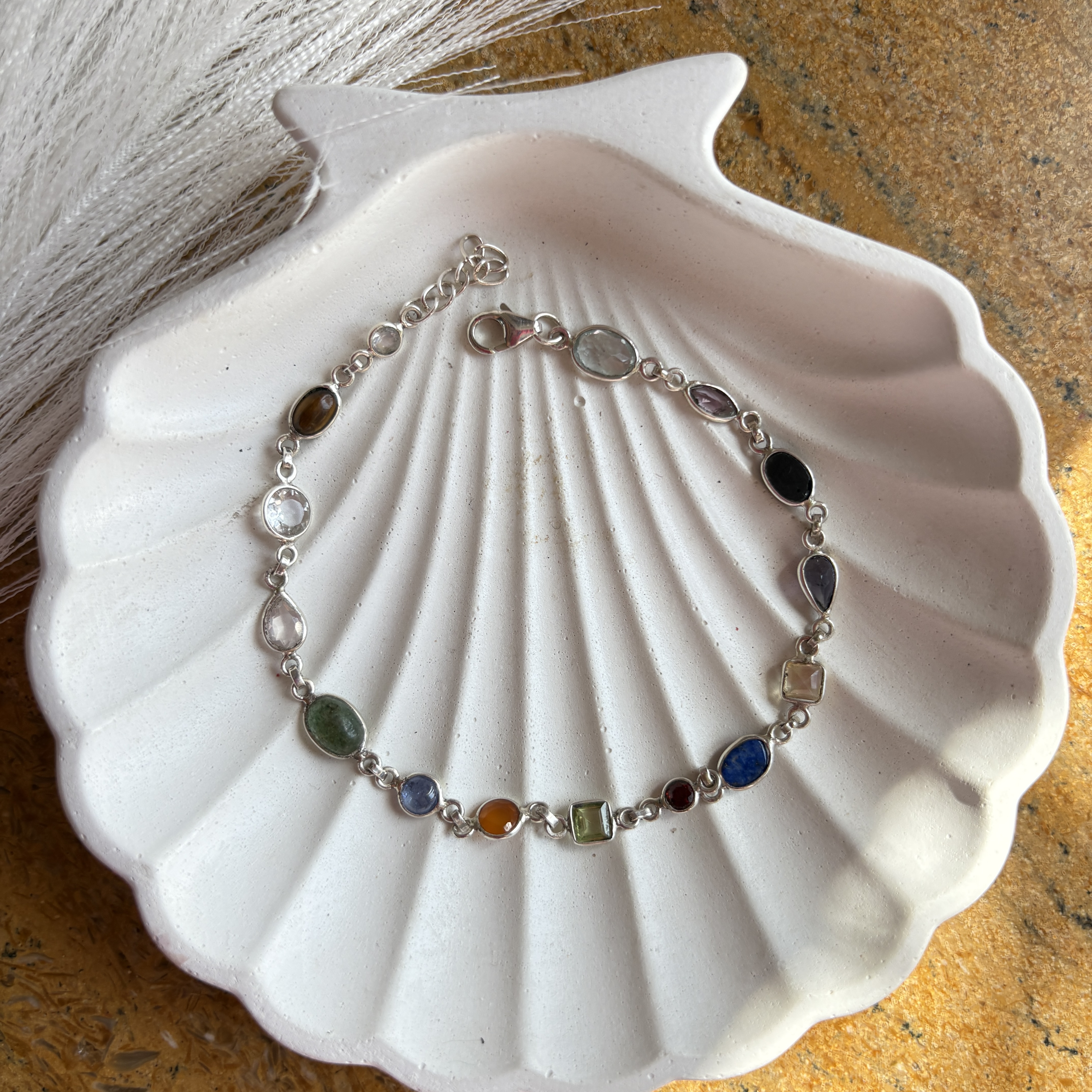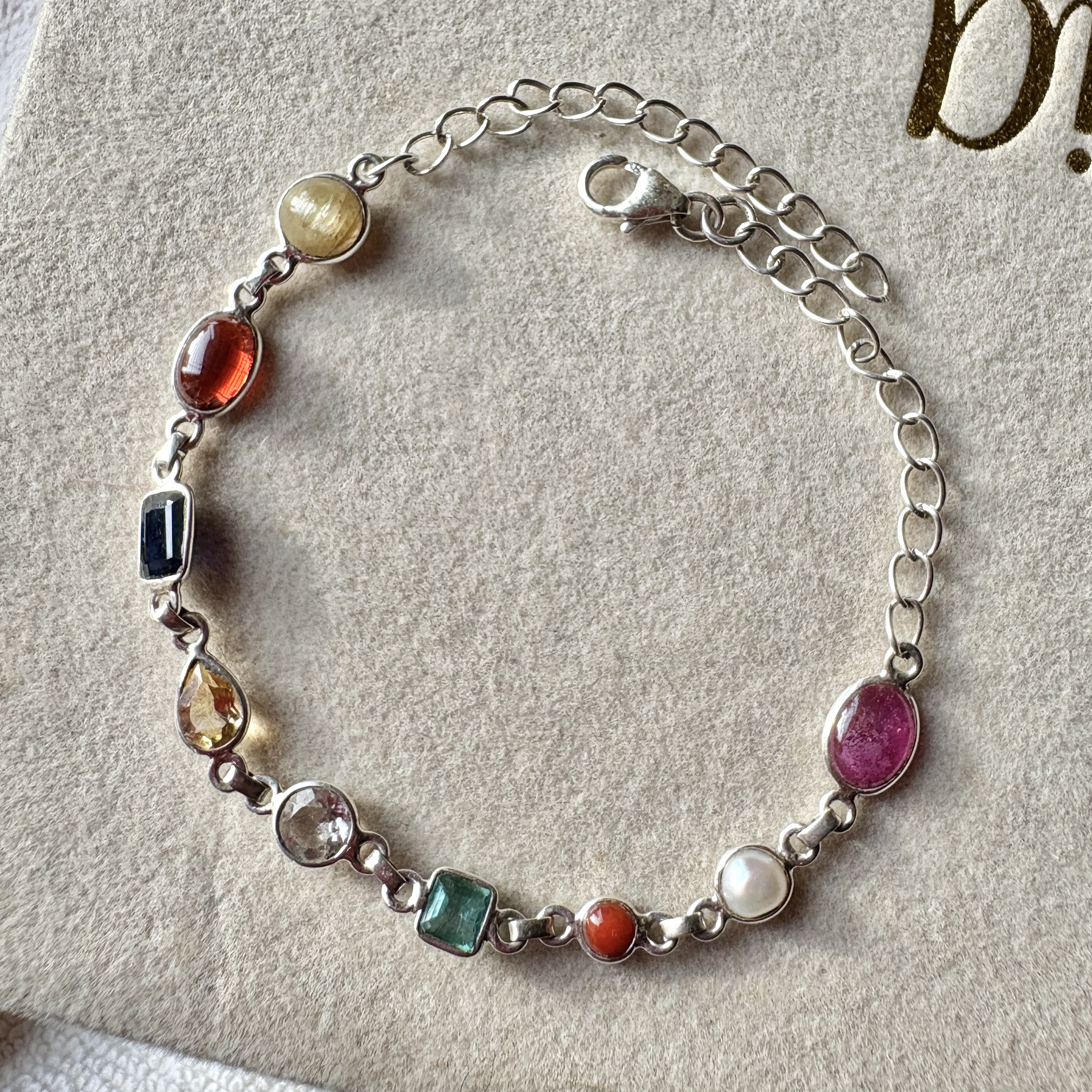 Real Navratna Gemstones Minimal Bracelet in 92.5 Silver