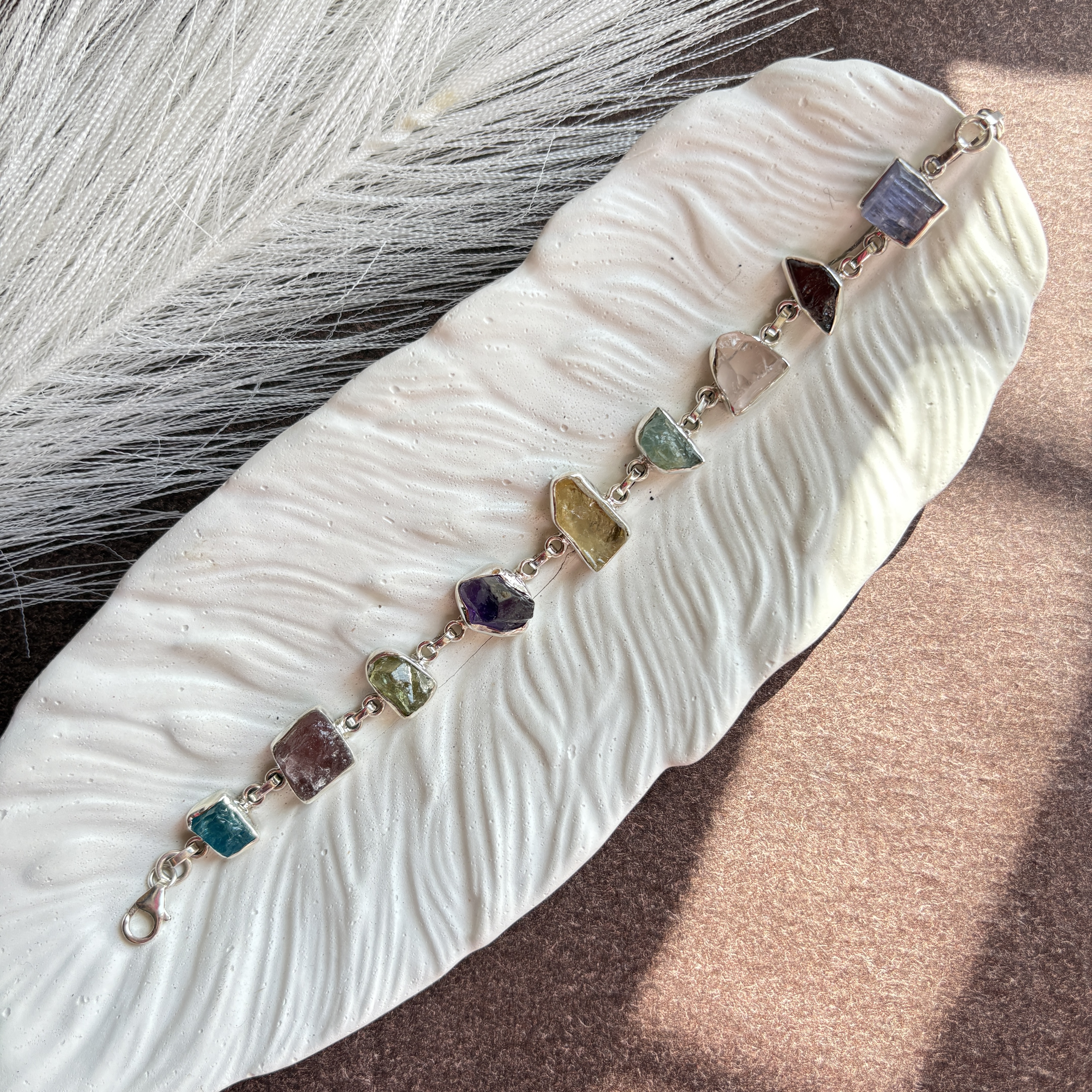 Natural Multi Raw Healing bracelet 92.5 Silver (Sterling Silver)