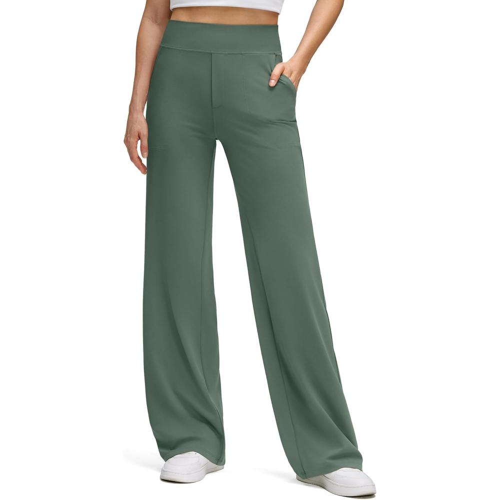 G4Free BareFeel High Stretch Wide Leg Pants for Women Soft Comfy Casual Yoga Pants with Pockets Petite/Regular/Tall(Gray Sage)